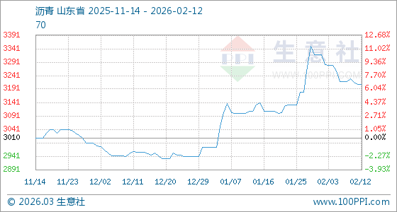 2月12日,生意社瀝青基準(zhǔn)價(jià)為3210.00元/噸,與本月初(3320.00元/噸)相比,下降了3.31%。