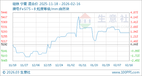 2月16日,生意社硅鐵基準(zhǔn)價(jià)為5287.14元/噸,與本月初(5324.29元/噸)相比,下降了0.7%。