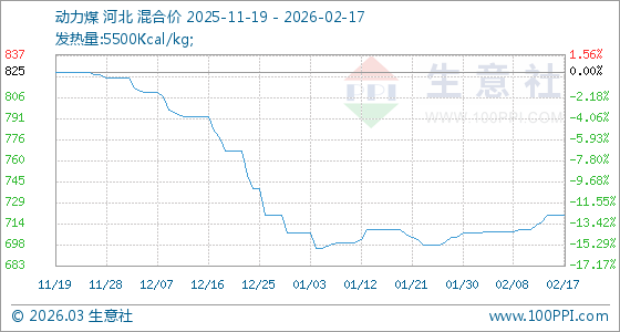 2月17日,生意社動(dòng)力煤基準(zhǔn)價(jià)為720.50元/噸,與本月初(707.50元/噸)相比,上漲了1.84%。