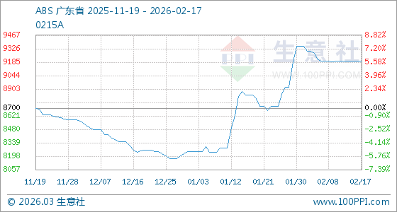 2月17日,生意社ABS基準價為9193.33元/噸,與本月初(9350.00元/噸)相比,下降了1.68%。