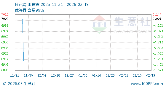 2月19日,生意社環(huán)己烷基準價為6900.00元/噸,與本月初持平。