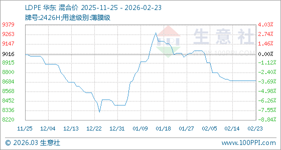2月23日,生意社LDPE基準價為8700.00元/噸,與本月初(9066.67元/噸)相比,下降了4.04%。