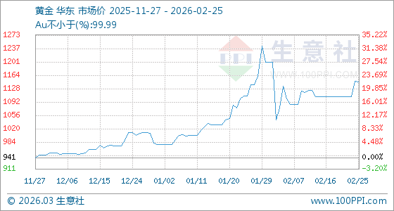 2月25日,生意社黃金基準(zhǔn)價(jià)為1148.18元/克,與本月初(1199.84元/克)相比,下降了4.31%。