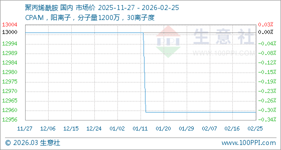 2月25日,生意社聚丙烯酰胺基準價為12960.00元/噸,與本月初持平。