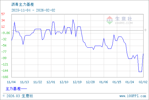 注: 1、從2025-11-04 至 2026-02-02期間,石油瀝青主力基差最大值為38.67,最小值為-148.00。