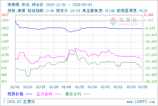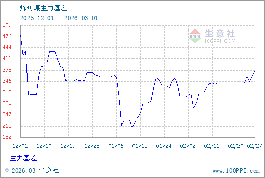 注: 1、從2025-12-01 至 2026-03-01期間,焦煤主力基差最大值為482.25,最小值為209.75。