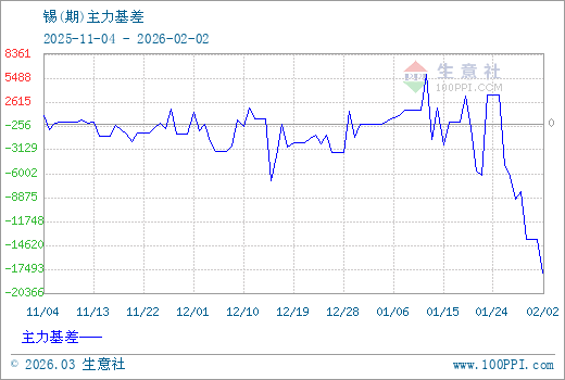 注: 1、從2025-11-04 至 2026-02-02期間,錫主力基差最大值為5967.50,最小值為-17972.50。
