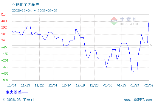 注: 1、從2025-11-04 至 2026-02-02期間,不銹鋼主力基差最大值為421.67,最小值為-501.67。