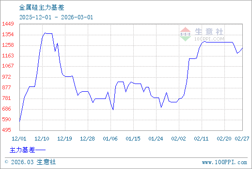注: 1、從2025-12-01 至 2026-03-01期間,工業(yè)硅主力基差最大值為1370.00,最小值為575.00。