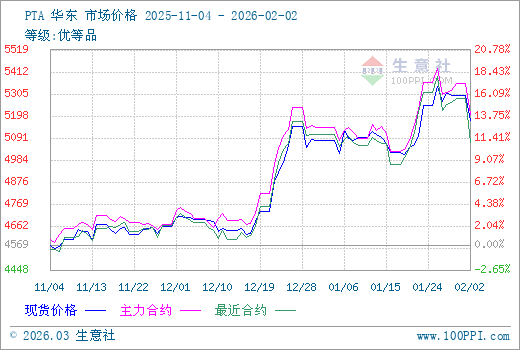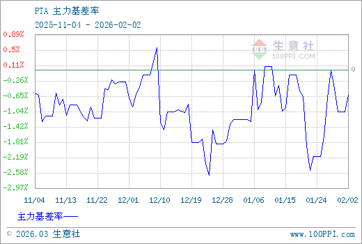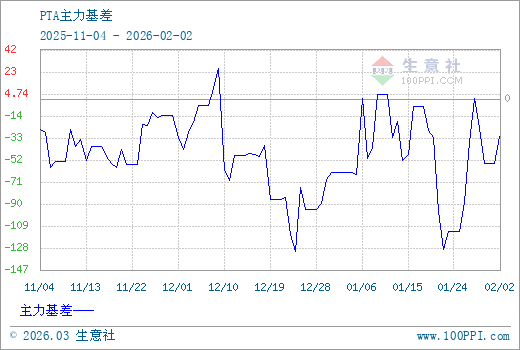 注: 1、從2025-11-04 至 2026-02-02期間,PTA主力基差最大值為26.92,最小值為-131.50。