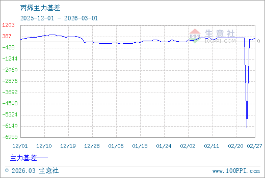 注: 1、從2025-12-01 至 2026-03-01期間,丙烯主力基差最大值為523.75,最小值為-6276.00。