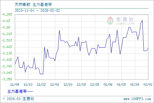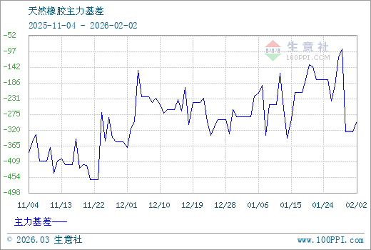注: 1、從2025-11-04 至 2026-02-02期間,天然橡膠主力基差最大值為-90.00,最小值為-461.67。