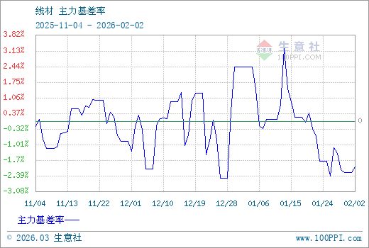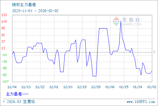 注: 1、從2025-11-04 至 2026-02-02期間,線材主力基差最大值為113.50,最小值為-87.00。