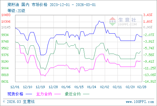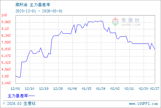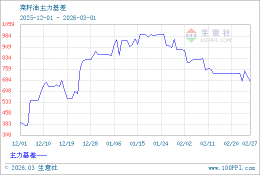 注: 1、從2025-12-01 至 2026-03-01期間,菜籽油OI主力基差最大值為997.00,最小值為371.00。