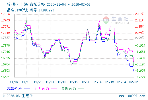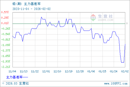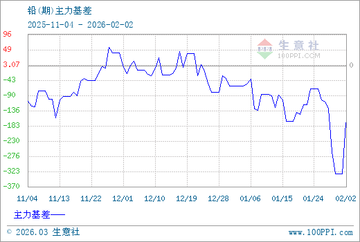 注: 1、從2025-11-04 至 2026-02-02期間,鉛主力基差最大值為57.50,最小值為-331.25。