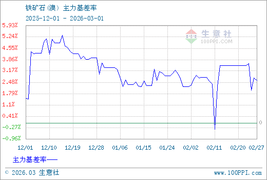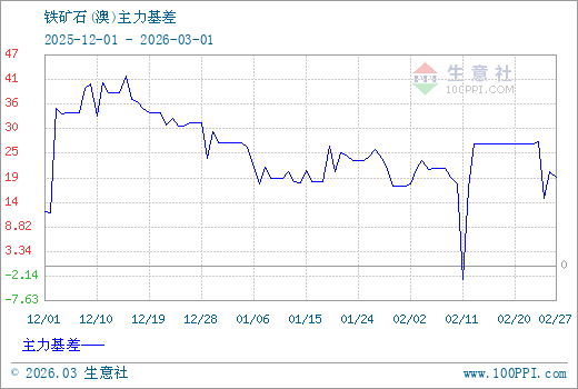 注: 1、從2025-12-01 至 2026-03-01期間,鐵礦石主力基差最大值為42.67,最小值為-3.06。