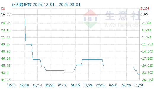 3月1日生意社正丙醇指數(shù)為43.13