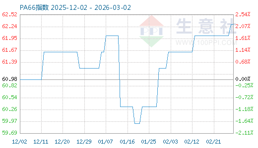 3月1日生意社PA66指數(shù)為62.29,與昨日持平,較周期內(nèi)最高點(diǎn)168.76點(diǎn)(2021-04-06)下降了63.09%,較2026年01月21日最低點(diǎn)59.93點(diǎn)上漲了3.94%。(注:周期指2017-03-01至今)