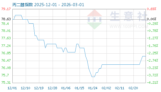 3月1日生意社丙二醇指數(shù)為76.71