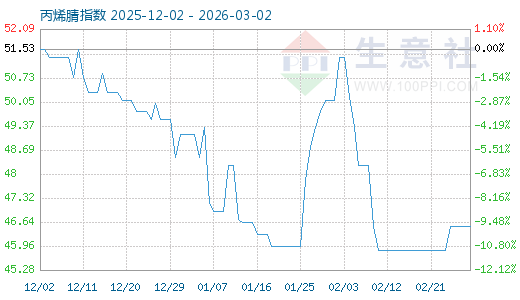 3月1日生意社丙烯腈指數(shù)為46.51