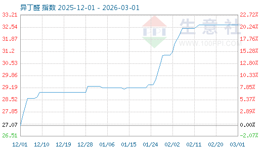 3月1日生意社異丁醛 指數(shù)為32.66