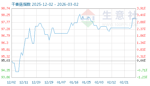 3月1日生意社干香菇指數為98.07,與昨日持平,較周期內最高點105.32點(2025-07-31)下降了6.88%,較2025年11月20日最低點93.16點上漲了5.27%。(注:周期指2025-01-08至今)