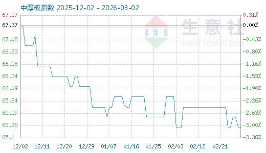 3月1日生意社中厚板指數(shù)為65.31