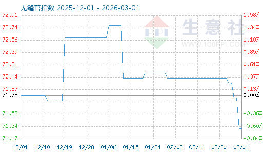 3月1日生意社無縫管指數(shù)為71.32