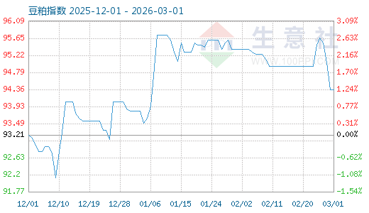 3月1日生意社豆粕指數(shù)為94.35