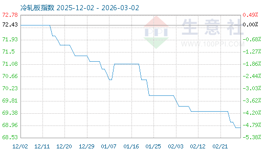 3月1日生意社冷軋板指數(shù)為68.89