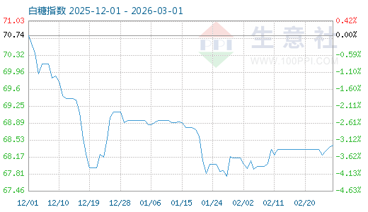 3月1日生意社白糖指數(shù)為68.43