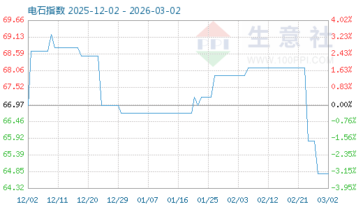3月1日生意社電石指數(shù)為64.77,與昨日持平,較周期內(nèi)最高點(diǎn)212.23點(diǎn)(2021-10-26)下降了69.48%,較2016年03月14日最低點(diǎn)55.49點(diǎn)上漲了16.72%。(注:周期指2011-09-01至今)