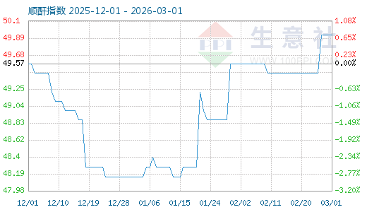 3月1日生意社順酐指數(shù)為49.93