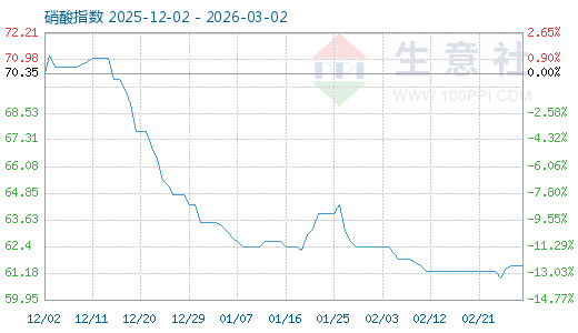 3月1日生意社硝酸指數(shù)為61.54