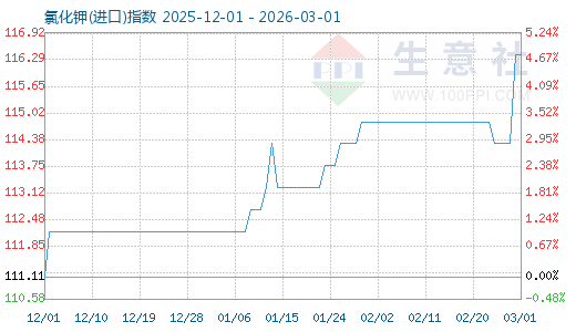 3月1日生意社氯化鉀(進(jìn)口)指數(shù)為116.40