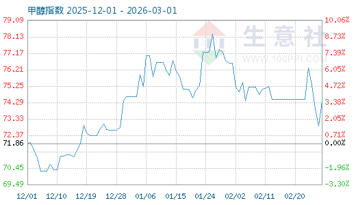 3月1日生意社甲醇指數為74.40