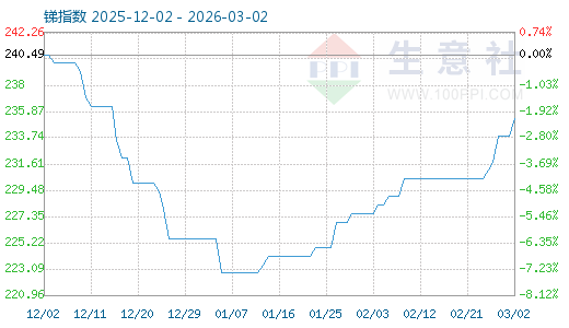 3月1日生意社銻指數(shù)為233.87