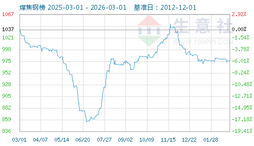 2月17日生意社煤焦鋼指數(shù)為979
