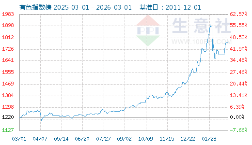 2月2日生意社有色指數(shù)為1718