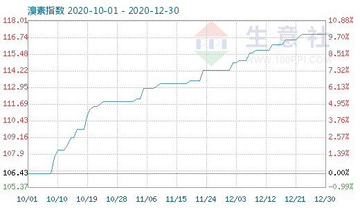 溴素商品指數(shù)自2020/7/19起,165天陸續(xù)上漲了26.855%。