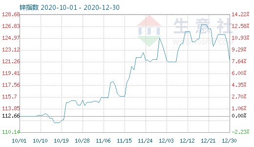 12月30日鋅商品指數(shù)為121.35