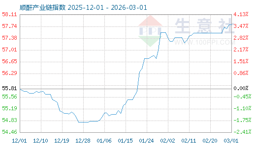 1. 2月1日生意社順酐產(chǎn)業(yè)鏈指數(shù)為57.56