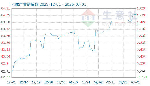 1. 2月1日生意社乙醇產(chǎn)業(yè)鏈指數(shù)為83.70