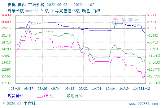 據(jù)生意社監(jiān)測(cè),2日3128B皮棉價(jià)格15320元/噸,較上一交易日下跌0.28%,同比下跌32.20%。