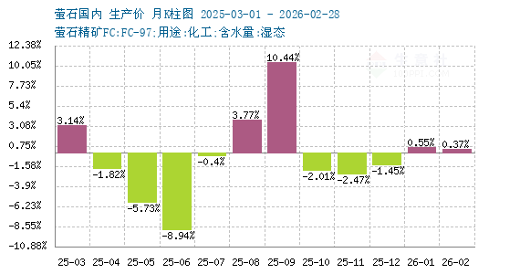 第二階段是4月初至年底,螢石價格單邊上漲。國內(nèi)螢石價格由2547.22元/噸上漲至3200元/噸,漲幅為25.63%。國內(nèi)螢石價格不斷上漲,階段內(nèi)利好疊加,下半年礦山開工低下,原料供應(yīng)十分緊張,致使螢石價格居高不下,加之螢石出口方面大幅增加,新型需求不斷發(fā)展,利好支撐,螢石行情一路走高。