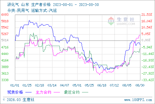 8月山東液化氣民用市場先漲后跌,整體上漲。據(jù)生意社數(shù)據(jù)監(jiān)測,8月1日液化氣民用山東市場均價在4380元/噸,8月30日均價在4830元/噸,月內(nèi)上漲幅度為10.27%,較去年同期相比下跌18.14%。