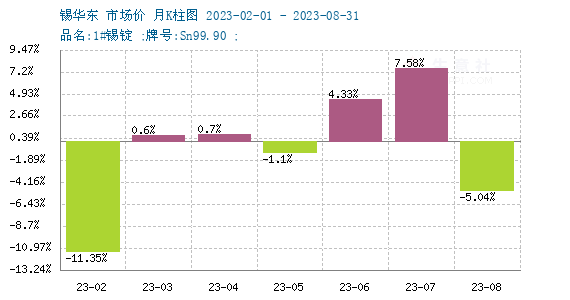 據生意社商品行情分析系統(tǒng):2023年9月國內1#錫錠市場寬幅震蕩。國內市場均價月初在217110元/噸,月末在222710元/噸,月漲2.58%。