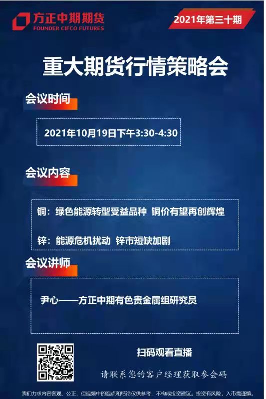 直播介紹:方正中期期貨研究院重大期貨行情策略視頻會——2021年第30期近期有色板塊走強,銅鋅價格短期漲幅明顯,后續(xù)行情如何演繹成為市場 15:30 進入回看